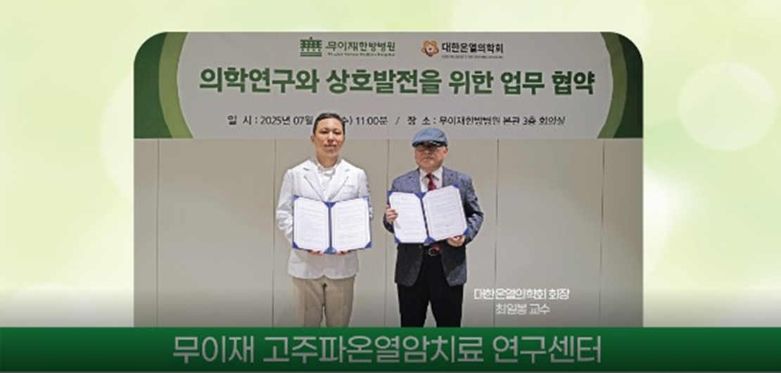 무이재의원의 본점인 무이재한방병원은 대한온열의학회와 고주파 온열치료를 공동으로 연구하고 있으며, 무이재의원에서도 대한온열의학회와 상호 교류하면서 고주파 온열 치료에 대한 임상치료를 활발히 진행하고 있습니다.