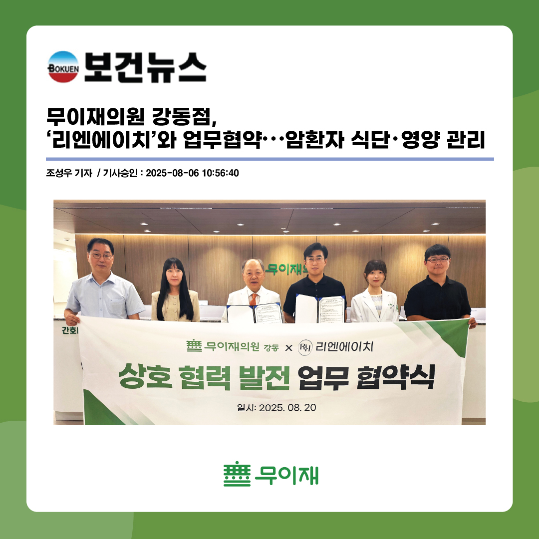 무이재의원 강동점, '리엔에이치'와 업무협약